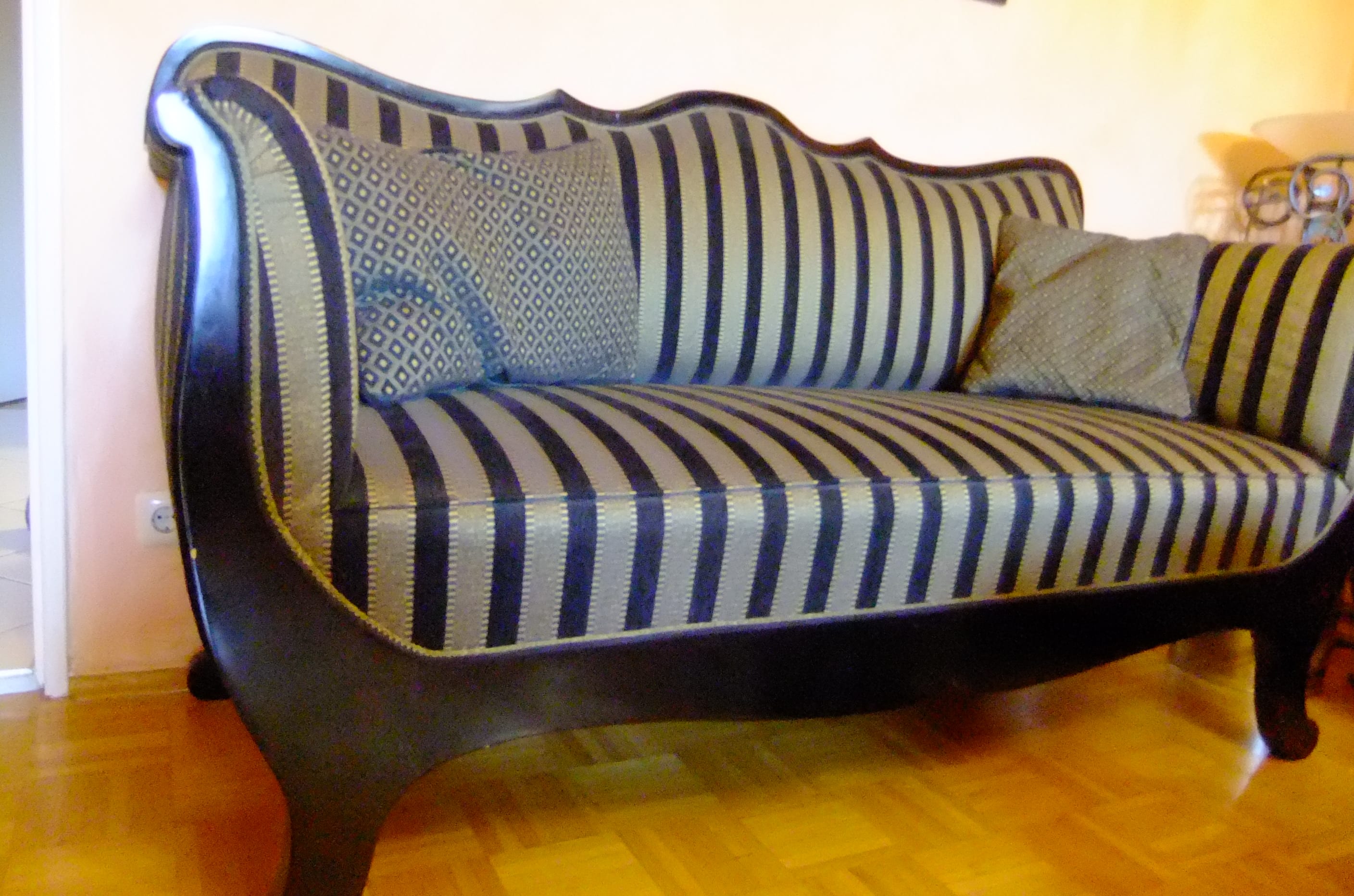 Komplettrestaurierung, lackiert, neue Polsterung, neuer Bezug